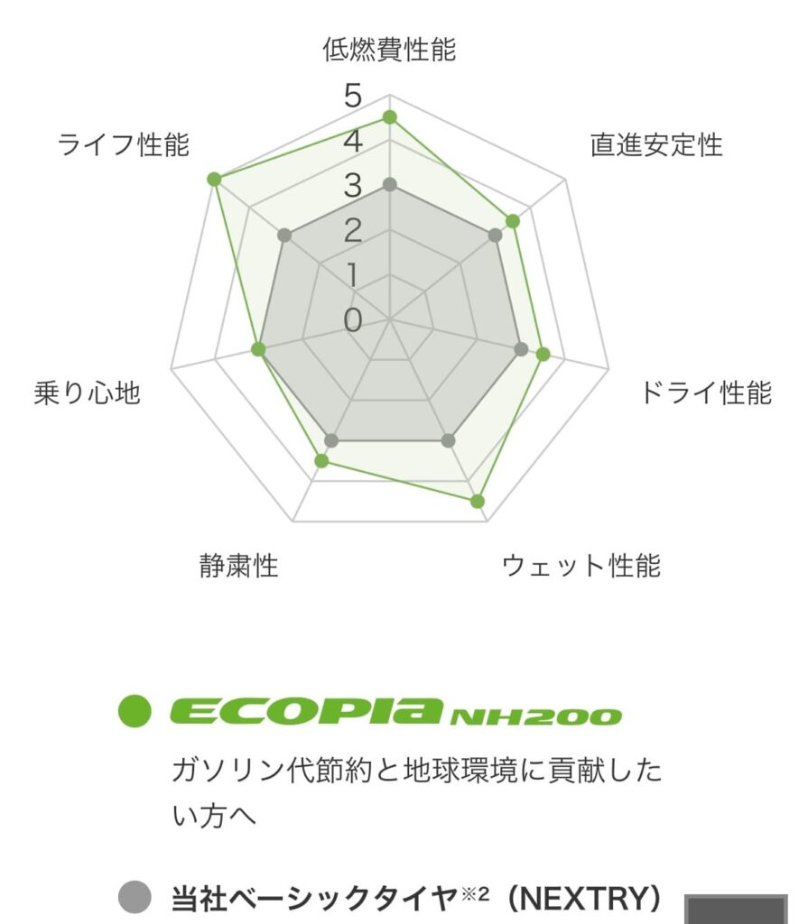 評価 | エコピアシリーズの最新モデル。燃費性能・耐摩耗性・雨天時の安全性が高評価。NH100から大幅に進化。 |